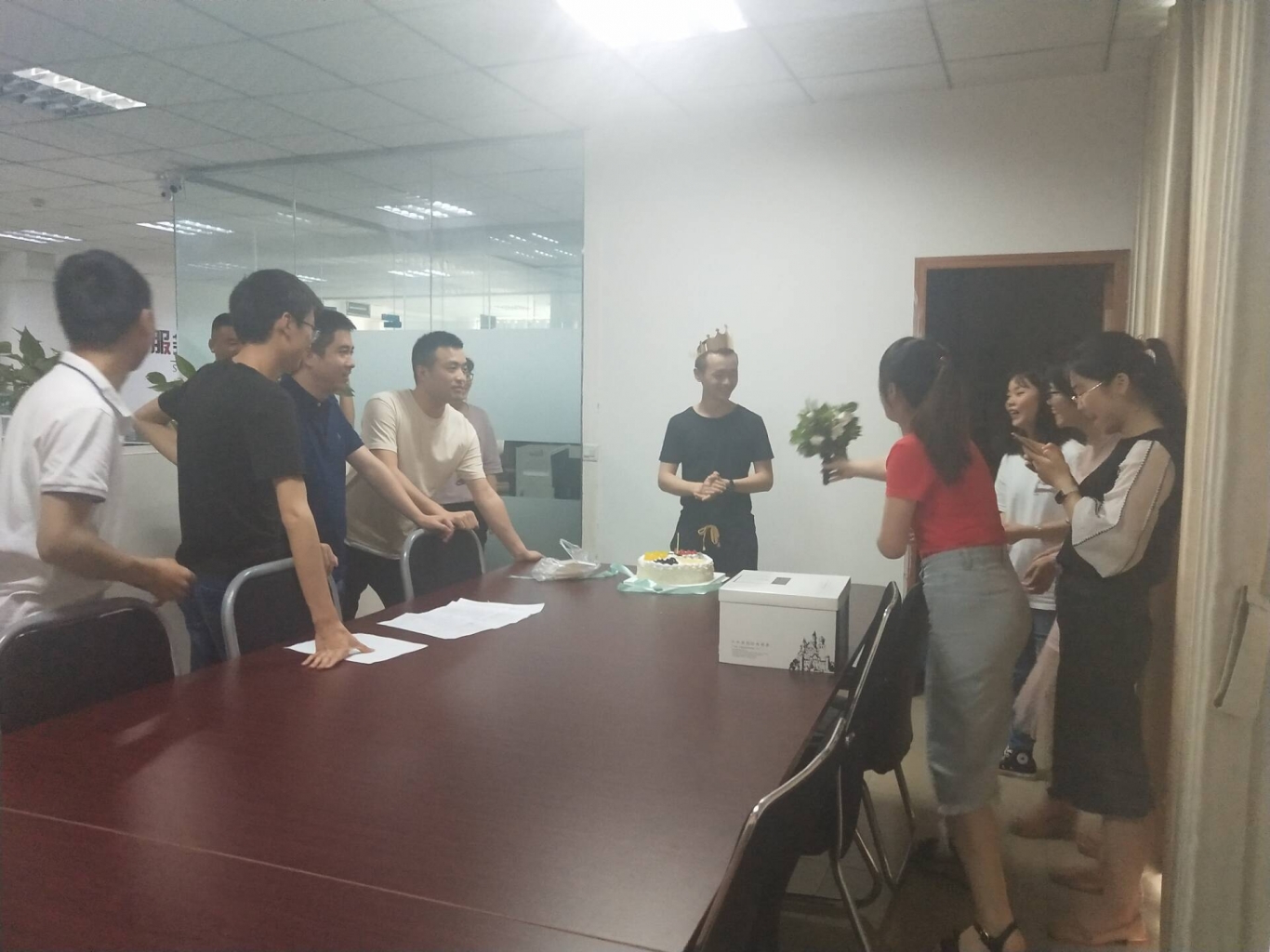 本次生日會在技術(shù)部的會議室內(nèi)舉行,由綜合辦負責(zé)組織,來自各部門的同事歡聚一堂,共同為本月的“壽星”慶生。上午九點,生日會正式開始,伴隨著生日歌的旋律,同事們隨著節(jié)拍唱起了生日歌,結(jié)束后紛紛為“壽星”送上鮮花和或致以真摯的祝福。溫馨彌漫在整個生日會場,燭光下洋溢著笑容的臉龐,體現(xiàn)了“不是一家人,勝似一家情”的溫馨氛圍。