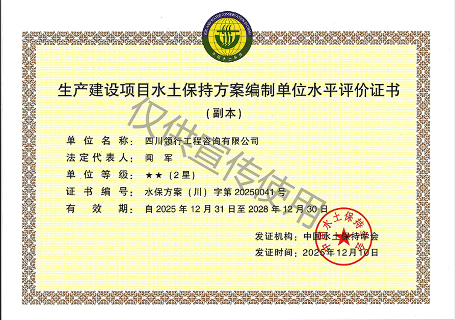 水土保持方案編制水平評價(jià)證書2星
